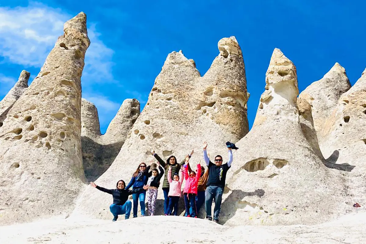 Caminata guiada de 1 hora y 30 minutos entre formaciones geológicas de ignimbrita volcánica, en un entorno natural único.